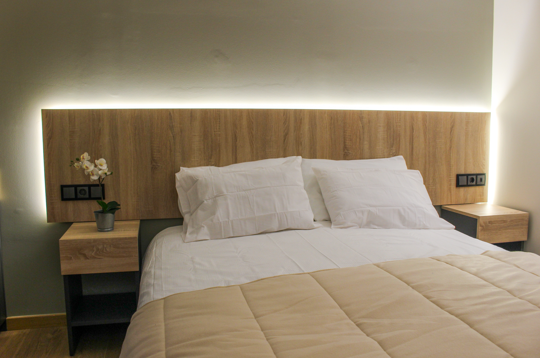 Quarto com 11m2, com cama de solteiro ou de casal. Esta tipologia dispõe de ar condicionado, wi-fi e televisão.